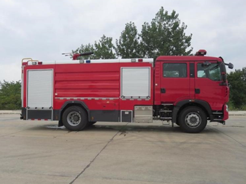 豪沃單橋水罐消防車(chē),整車(chē)由二類(lèi)汽車(chē)底盤(pán)、罐體、消防泵、管路、儀表電路系 統(tǒng)等部件組成,原裝雙排駕駛室可乘坐2+4人;該車(chē)為外露罐結(jié)構(gòu),車(chē)身前部為器材 箱構(gòu)成,中部為水罐,尾部為泵房。水罐為碳鋼材質(zhì),內(nèi)部噴涂環(huán)氧底漆和環(huán)氧瀝青